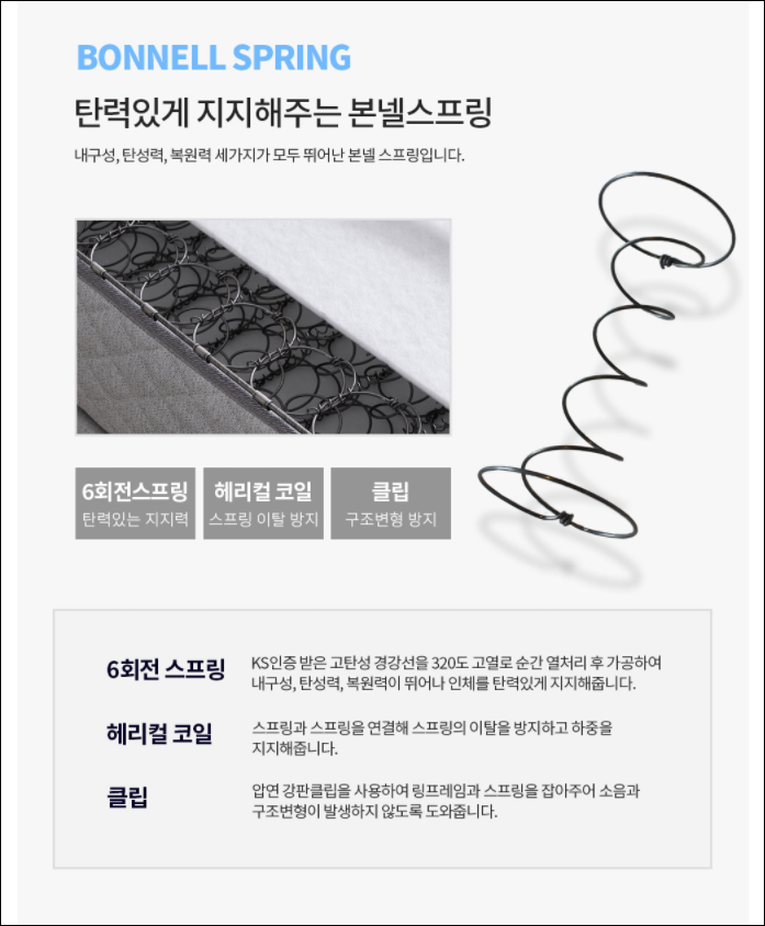 파워포켓 스프링이 네면의 꺼짐 현상을 방지한다고 하는데요. 몸이 편한 근본적인 이유는 안쪽과 바깥쪽의 스프링의 높이가 달라 안전적인 지지가 가능한 것으로 보입니다. 그렇기에 실제 써본 분들의 의견은 꺼진다는 느낌을 받을 수 없다고 하네요.